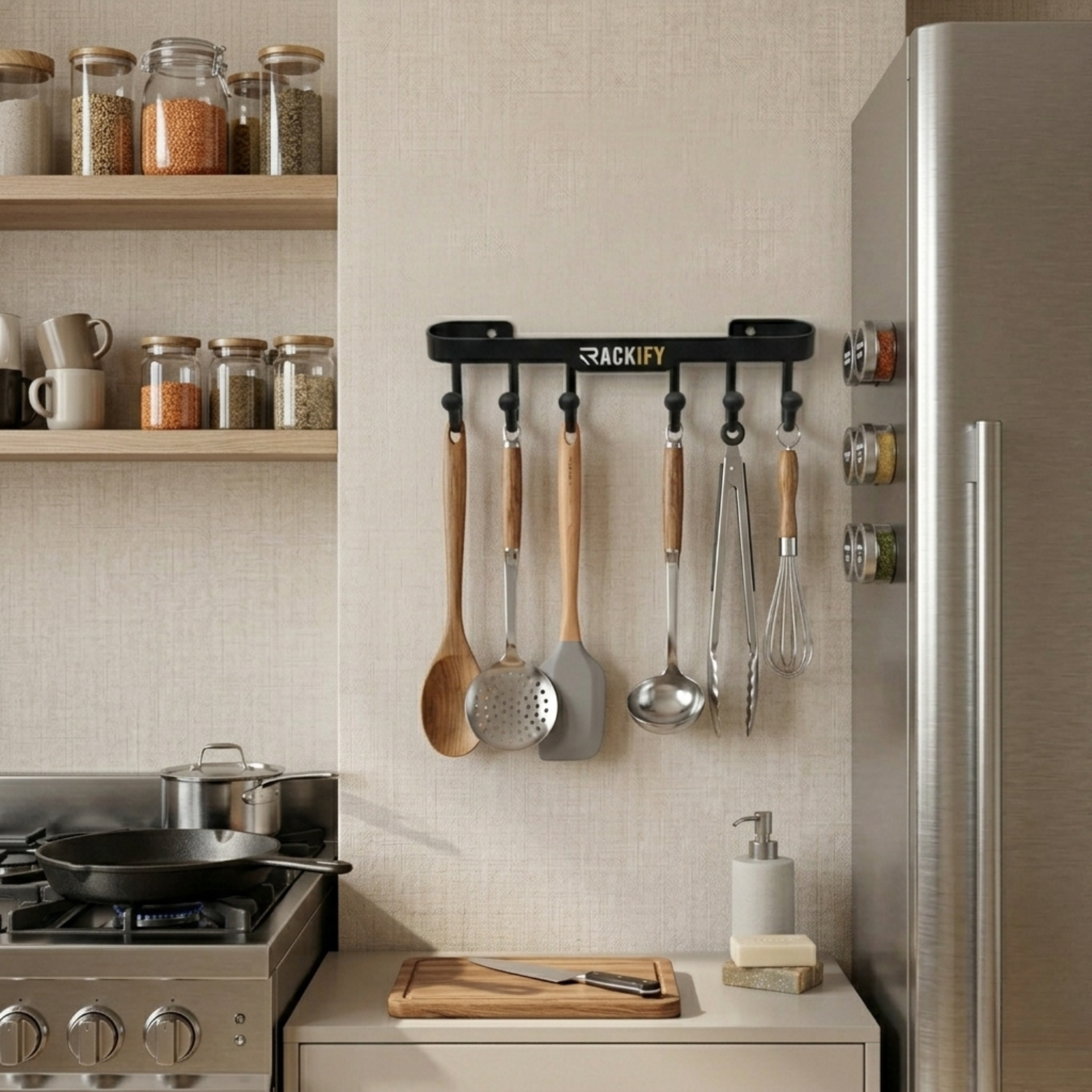 Be the first to review “6-Hook Wall Mounted Rail Organizer – Black Metal | The Rackify” Cancel reply